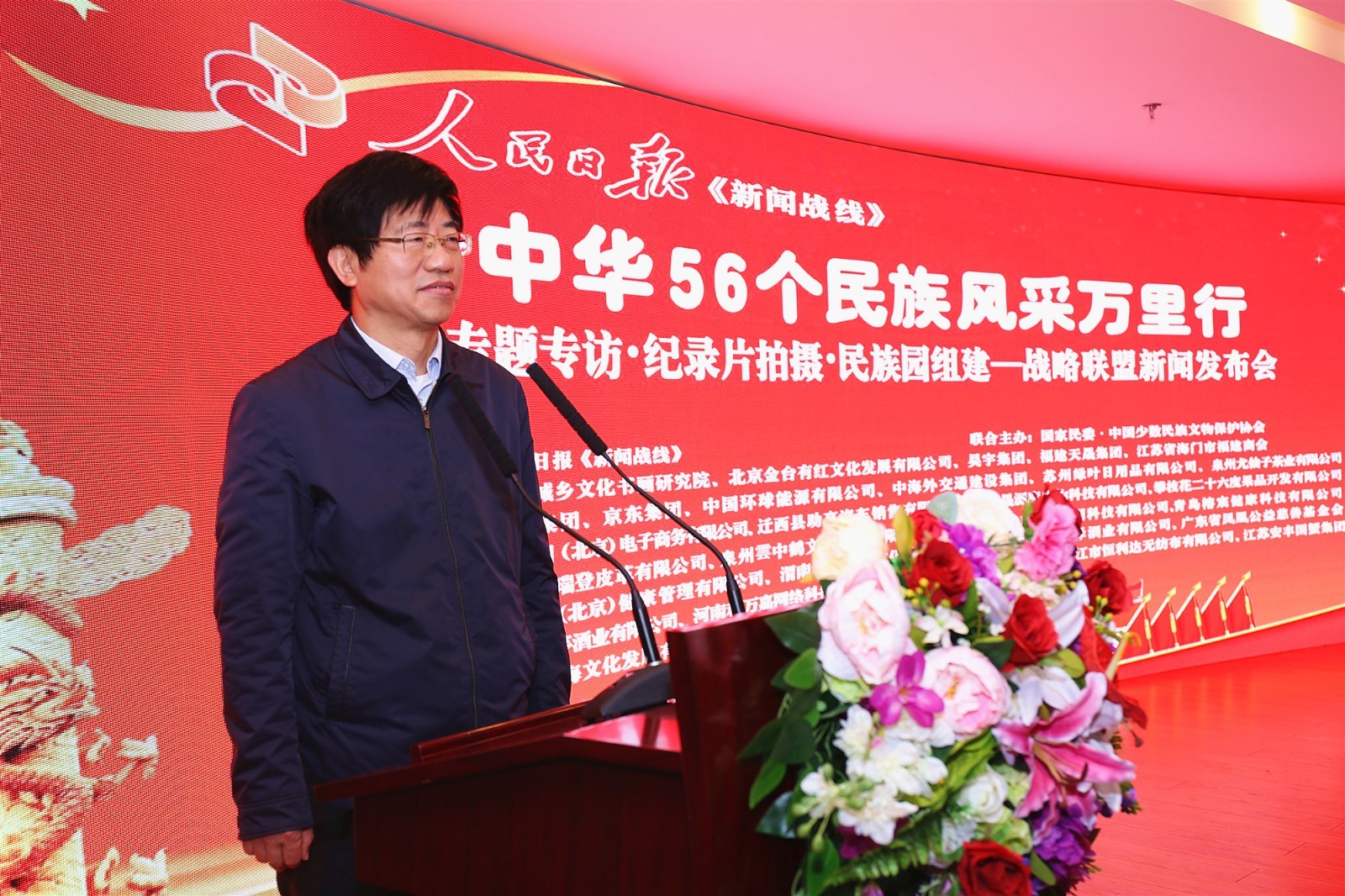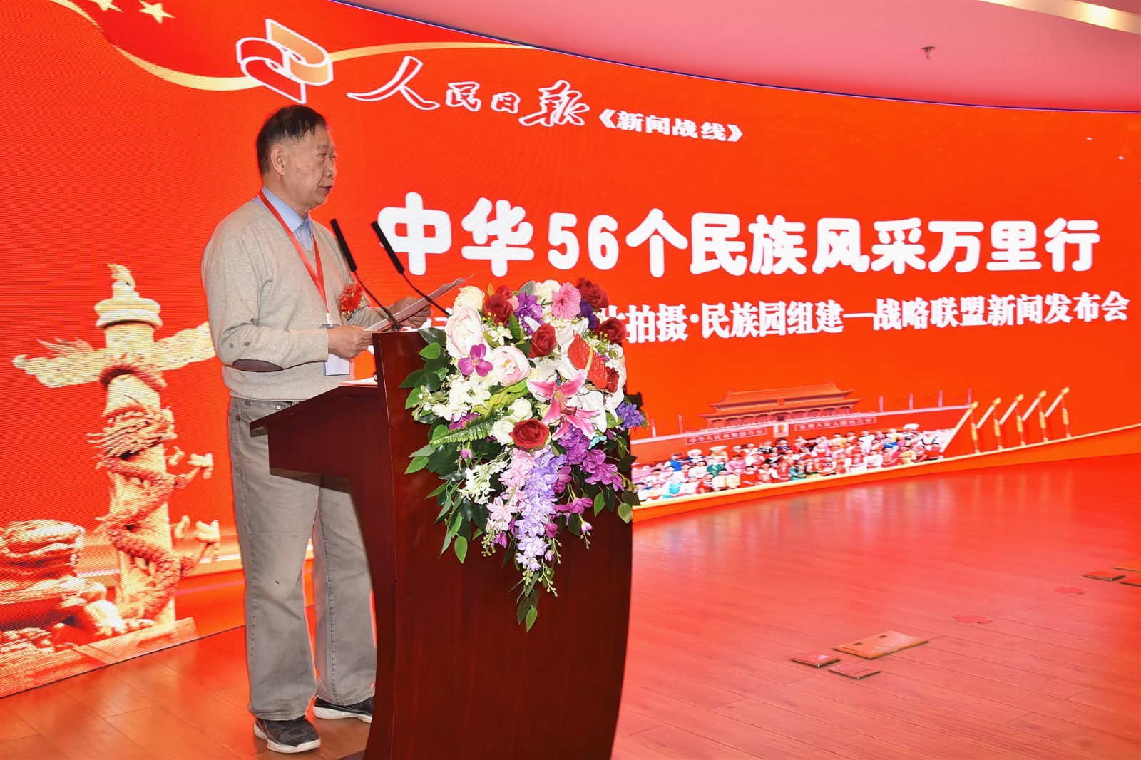 12月22日,由人民日报《新闻战线》主办的“中华56个民族风采万里行”专题专访、纪录片拍摄、民族园组建的战略联盟新闻发布会在人民日报社隆重举行。来自中宣部、中共中央政策研究室、国家民委、农业农村部、文化和旅游部等单位的领导专家以及知名书画艺术家、知名企业家400余人参加了此次活动。
