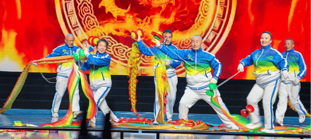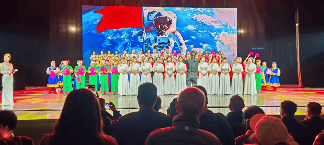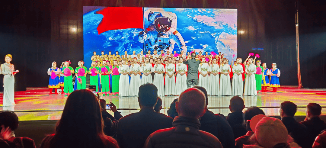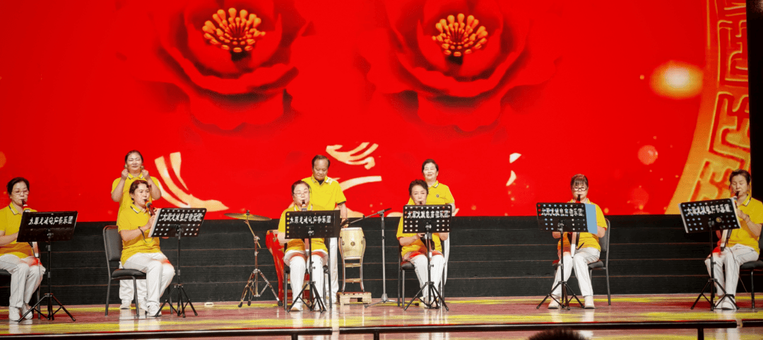 器乐与民俗表演同样吸睛:南三巷器乐合奏《欢庆》变奏曲节奏明快,渐次欢腾,恰似子孙承欢膝下的笑语,似秋日丰收的鼓点,更似代代相传的孝悌之声。罗城街道的舞蹈《黄河水从我家门前过》气势恢宏,舞者们用充满力量的动作展现了黄河的磅礴气势与人民的豪迈情怀。蓝湾社区的空竹表演《龙腾盛世》技艺精湛,翻飞的空竹以银线为阶,以风声为翼,带观众跃向云霄。阳光南社区的舞蹈《沂蒙颂》充满深情,红绸子裹着军民鱼水的热乎气儿,舞得人心里发暖。西峪一社区的葫芦丝演奏《北京的金山上》的弦子步踩着民族复兴的鼓点,跳得人眼里发亮。蓝湾社区与梧桐苑社区共同带来大合唱《我的祖国》,熟悉的旋律响起,全场观众也一同加入合唱,每一句歌词都饱含着对祖国的热爱与祝福。
