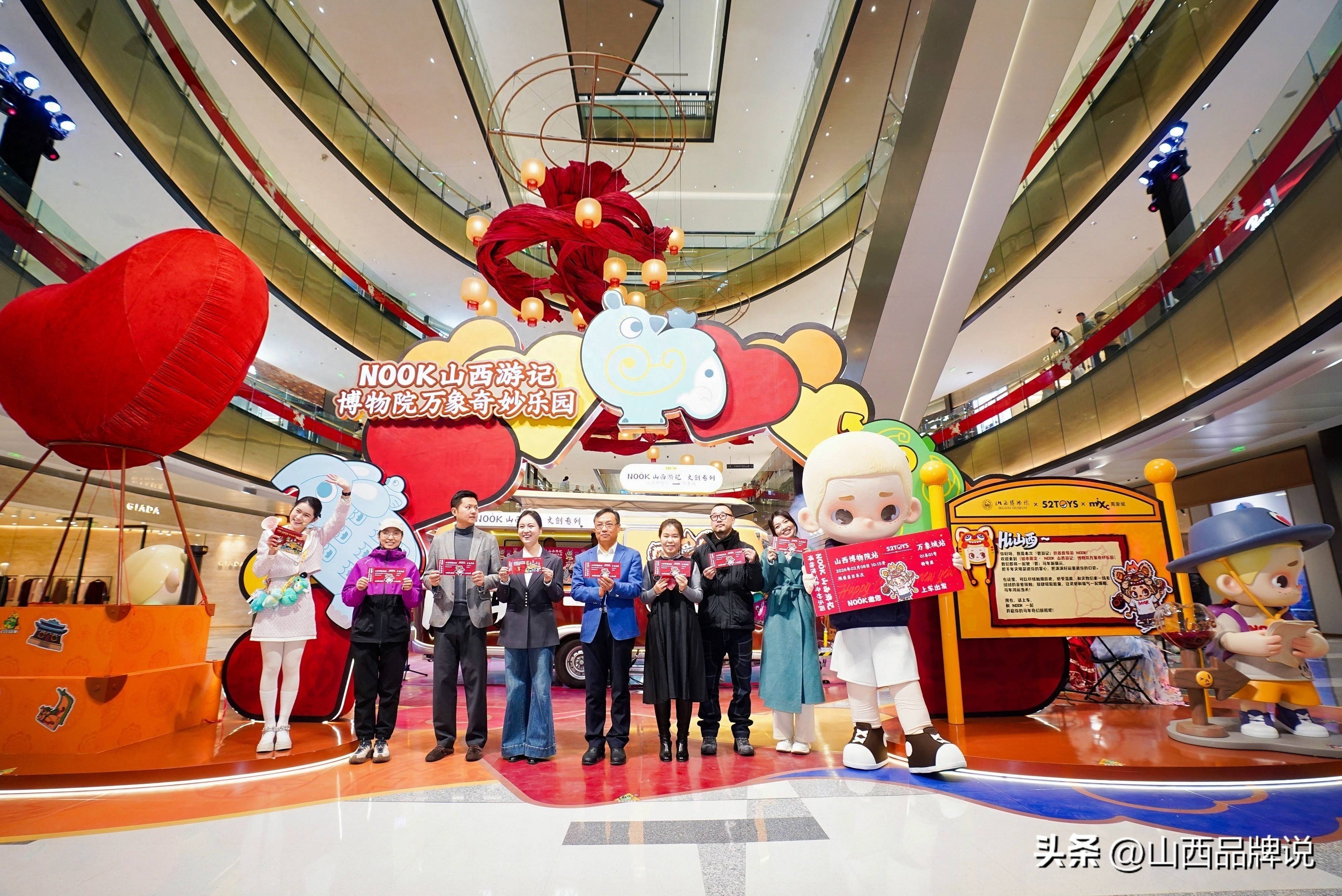 2026年2月8日,一场跨越时空的文化邂逅在太原万象城一楼中庭生动上演。由山西博物院、潮流品牌52TOYS与太原万象城三方首次联袂打造的“NOOK山西游记——博物院万象奇妙乐园”正式面向公众开放。此次活动将持续至3月3日,以一座“可移动的博物院”形式,将厚重的三晋文明融入都市商业脉搏,开启一场沉浸式探索之旅。这不仅是三方首次深度联动推出的文化体验项目,更标志着一种可持续、可复制的“文化、商业、潮流IP”融合新模式进入实践阶段。