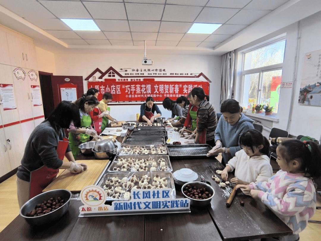 2月2日下午,长风社区新时代文明实践站组织辖区居民开展“我在文明实践站过大年——巧手蒸花馍,文明贺新春”活动。