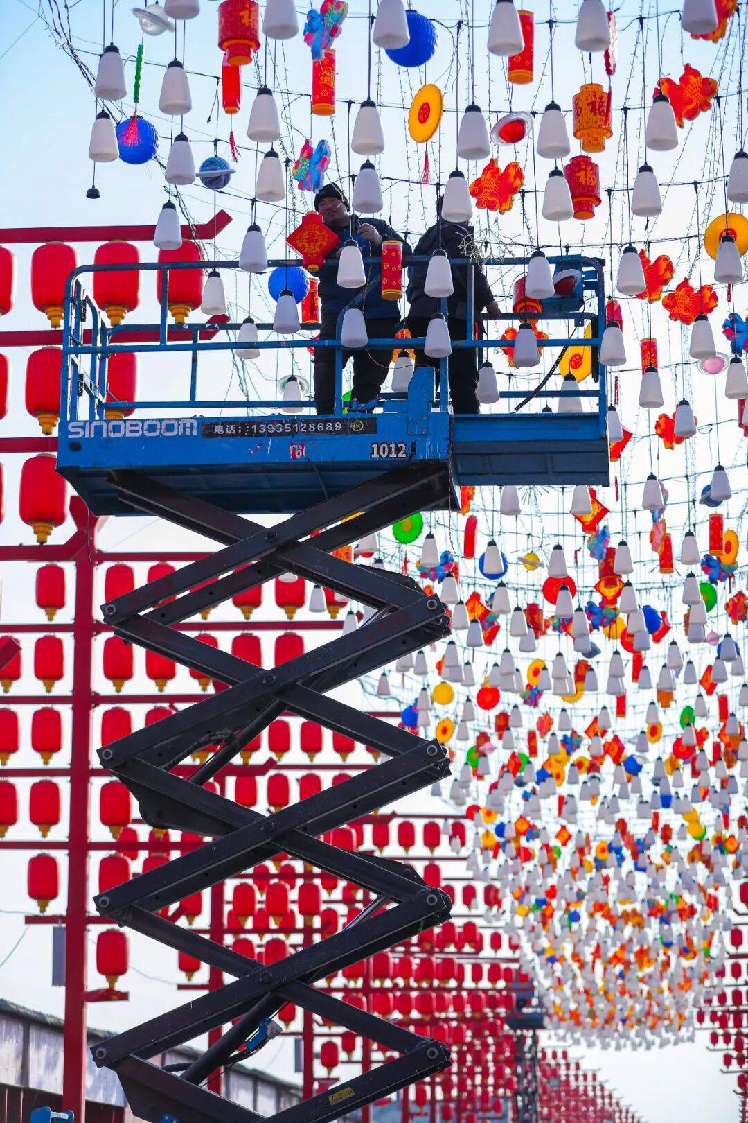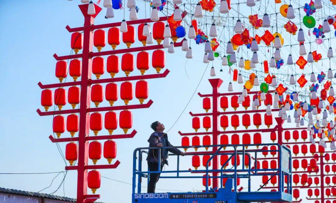 为迎接2026第五届小店区刘家堡村“堡里有年味 回村过大年”春节民俗活动,刘家堡村的筹备工作已进入冲刺阶段。工作人员登上高空作业平台布设彩灯。一盏盏红彤彤的灯笼、五彩斑斓的花灯错落悬挂。从框架搭建到灯饰调试,每一处细节都凝聚着匠心,昔日的古堡正被浓浓的年味层层包裹,静候八方宾客前来共赴非遗盛宴,重拾乡村团圆记忆。