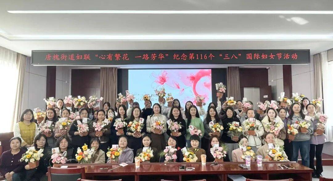 3月5日,唐槐街道妇联联合工会组织开展“心有繁花 一路芳华”主题插花活动,街道全体女职工60余人欢聚一堂,共度美好节日。