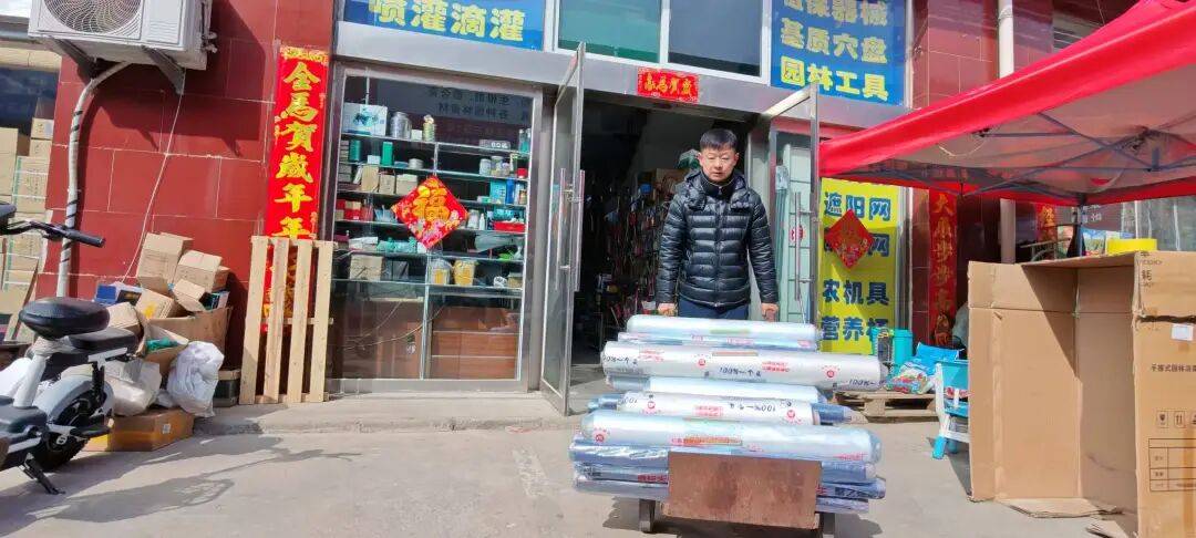 信诚农业设施中心店是市场内资深农资服务商,各类农用物资一应俱全,涵盖棚膜地膜、喷灌滴灌设备、育苗基质、穴盘、喷雾器、播种器等40余个大类、1000余种产品。自正月初六恢复营业以来,门店客流持续攀升。店主陈献红表示,为保障春耕物资供应,门店提前筹备种苗50吨、播种器3000余台、育苗基质3000余袋、育苗穴盘400余件,各类物资储备充足,全力满足春耕生产需求。