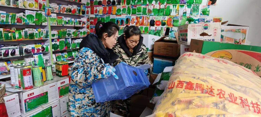 瑞丰农业店内,不同品类、不同规格的种子分门别类、有序码放在柜台,让人一目了然,不大的门店内挤满了顾客,店主赵强刚送走晋中灵石的经销商,又迎来通过抖音慕名而来的阳曲县农户,咨询下单电话更是接连不断。即使忙碌异常,他依旧耐心细致地讲解各类品种特性、种植要点,手把手指导农户科学选购,让每位顾客都满意而归。