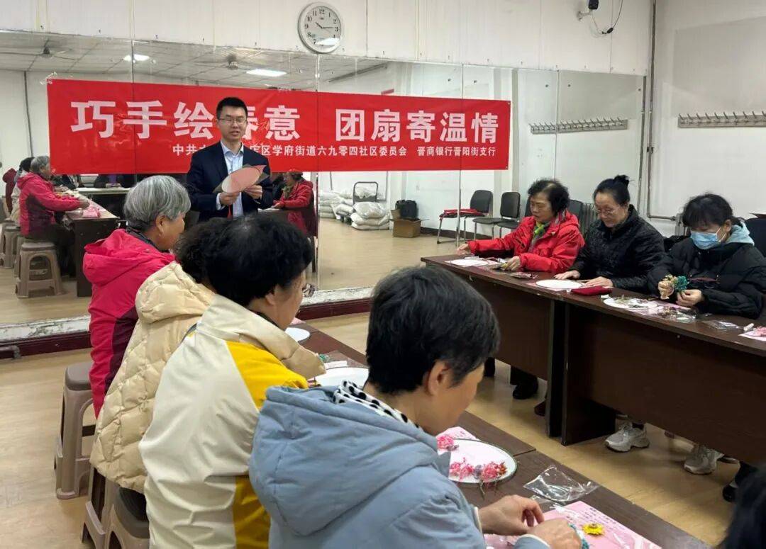近日,学府街道6904社区联合晋商银行晋阳街支行举办“巧手绘春意、团扇寄温情”手绘团扇DIY活动,为社区女性送上温馨的节日祝福。