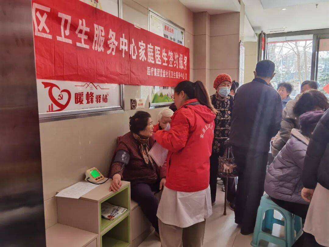3月10日,营盘街道并南一社区卫生服务站开展家庭医生签约服务活动,医护人员耐心细致地为大家测量血压、解答健康咨询。