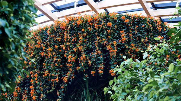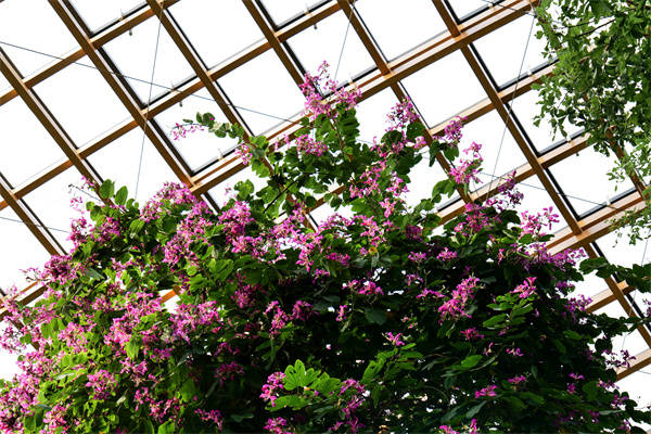 被称为“白雪姬”的肉质草本植物也别具韵味,其叶片覆有一层银白色绒毛,远望如披薄雪,清新雅致。此外,炮仗花、羊蹄甲、鹤望兰、非洲菊、红绒球、曼陀罗等各式植物也竞相绽放,红、黄、紫、绿交织成一片斑斓世界,吸引众多游客驻足观赏,感受自然之美。(杨润德 王惠林)